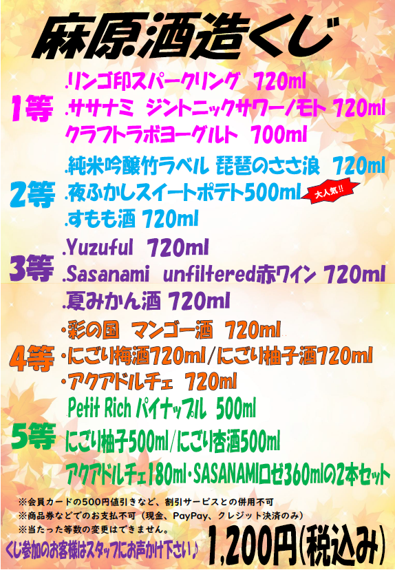 店舗限定!秋の麻原酒造くじ開催♪