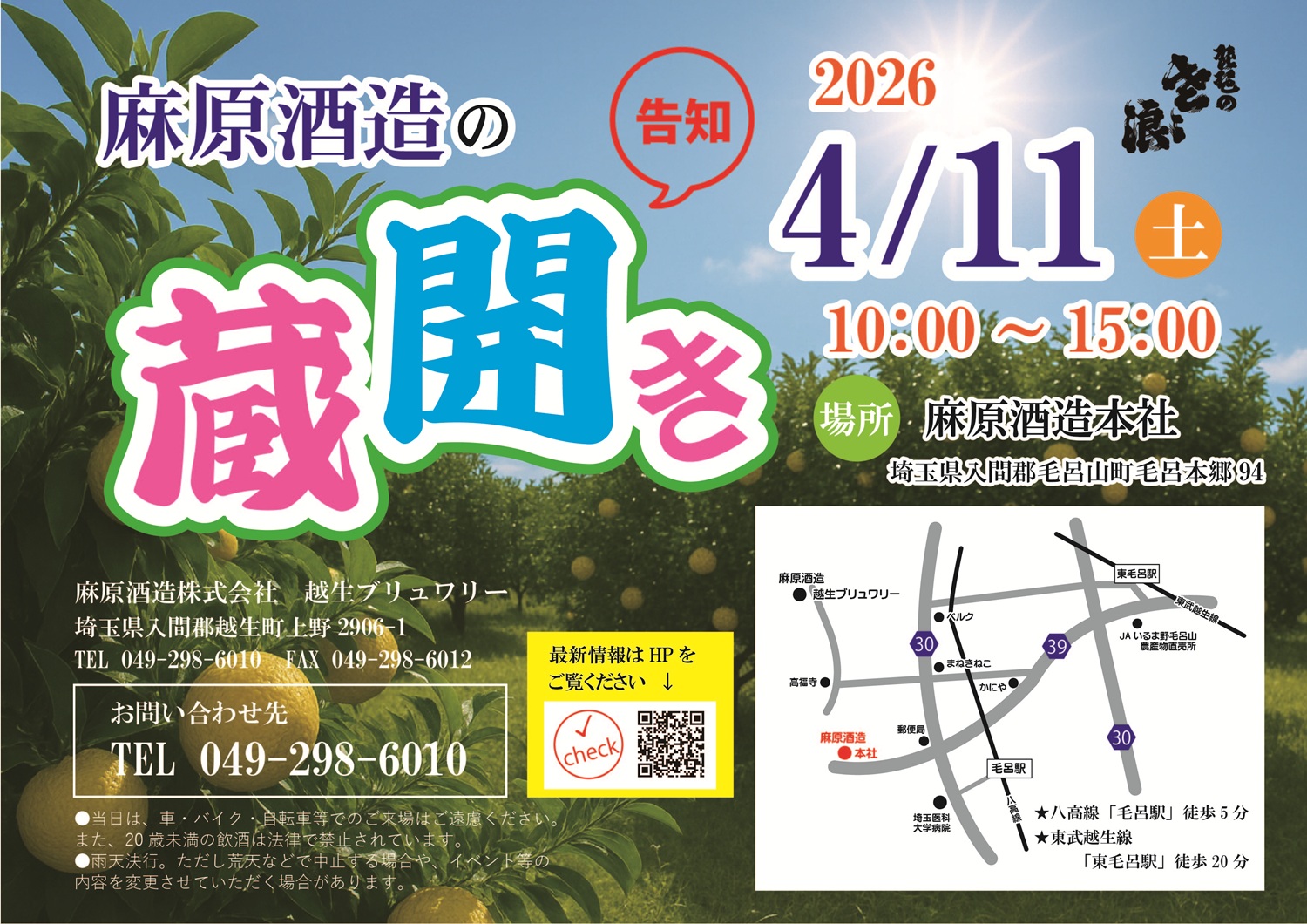みなさまお誘い合わせの上、ぜひ越生ブリュワリーまでお越しくださいませ。
