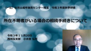 HOME > 講演会・相談会のお知らせ > 秋季研修を実施しました。(12/30up) 講演会・相談会のお知らせ 秋季研修を実施しました。(12/30up) 2021年11月~12月、秋季研修を在宅研修で実施しました。 講師と研修委員会が作成したレジュメと動画で、各自在宅で研修を受講しました。 研修内容 講師:西埼玉支部 小木曽弘司会員